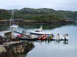 Martin, absoloutly stunning pics! 33ft Lochin and the Pioneer tender, what an ideal cruising and island/beach hopping setup! I must admit of all the activities we do with our Lochin, Fishing etc, Cruising and visiting new locations is by far and away the most enjoyment we get from the boat. Its such a buzz visiting or camping at a new location. We've almost given up trying to sleep aboard our Lochin and mostly opt for camping ashore too. The little waves slapping against the hull make it almost impossible to sleep! Anyways, on to our favourite anchorage pictures, in the first two pictures is "Acarsaid Mhor" on the little island of Rona just off Skye. A stunning location with an all tide/ weather jetty. The Second two are at "The Blue Lagoon" on Pabbay which is an island just off the west side of the Isle of Lewis.