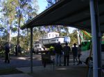 Boy has it been a terrific week! After 2 years and 10 months (exactly) we have launched our Lochin. She was lifted from Landsborough on the 9th June, to the hardstand at the local marina. The only drama we had, was that the crane that lifted her from her cradle got bogged in my father in laws driveway. Because the ground was so soft the low loader couldn't get in either. The crane eventually maneuvered itself onto some solid ground to be able to pick her up, and then the crane had to take the boat to the truck. For awhile my heart was in my mouth as she was swinging through the air in amongst the gum trees. Of course everything went like clockwork after that.