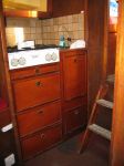 There are several reasons for having to do this job: firstly, as I have probably already stated on the forum, my boat was originally sold as "semi complete" and one of the things built by the first owner was the galley unit. In fact all of the things that the first owner made, whilst not necessarilly terrible, were not up to the standard of the work carried out by the original yard. The second reason is that when I fitted the spray deflector rails, I couldn't get sufficient access inside the galley unit to get to the through bolts so whilct trying to remove the front, it just fell apart in my hands, honest guv!
