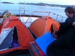 A couple of weekends ago we took a weekend off and heade out to Gunna sound between Tiree and Coll for a night then next day steamed up the west side of coll to the Cairns where we spent a second night. Due to it being so warm no one wanted to sleep in the fore peak so we solved the problem in quite a unique (I think way) I don't know if this has ever been done on a Lochin before but we could classify it as ''the Glastonbury'' model. see pic